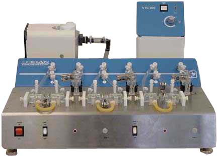 - Set up for 3 sets of Franz Diffusion Cells and 3 sets of Side-by-Side Cells.